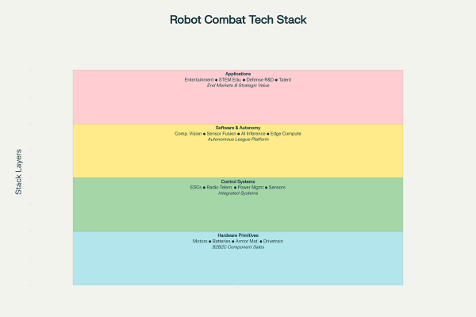 I've spent the last decade watching BattleBots with my son and writing checks for frontier tech—AI infrastructure, combat drones, nuclear microreactors, quantum computing. I've also evaluated investments in Figure AI and Apptronik. But I want to be clear about something: those humanoid manufacturing investments should not be our framework for assessing, like F1, the entertainment funds the infrastructure, but the real value lies in robot fight leagues. They're separate opportunities entirely.