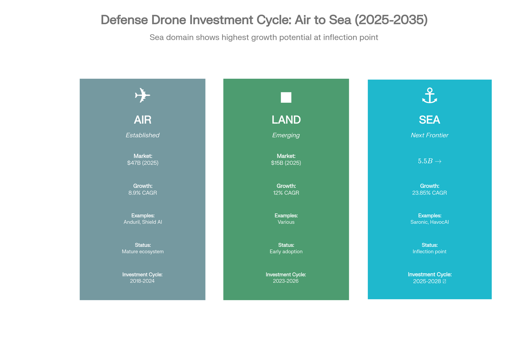 The aerial drone investment cycle demonstrated how capital positioned ahead of Pentagon procurement generates exceptional returns. The maritime autonomous cycle exhibits the same inflection characteristics—with superior fundamentals: faster deployment timelines, higher growth rates, lower competitive density, and clearer paths to multi-billion-dollar exits.