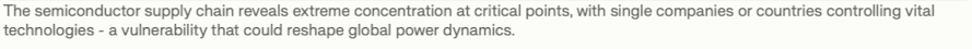 First, concentration breeds vulnerability. The semiconductor supply chain’s efficiency came at the cost of resilience. When a handful of companies in a few geographic locations control technologies essential to modern civilization, a single earthquake, political crisis, or military conflict can cascade into global catastrophe.
